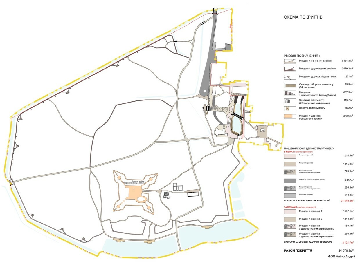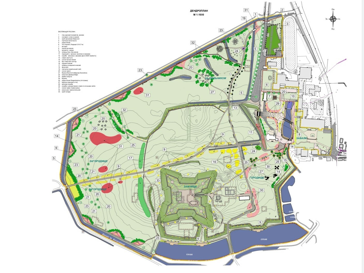 Zamchyshche zone has a complex structure; terrain is heterogeneous, distorted by anthropogenic activities so it is to be leveled.
