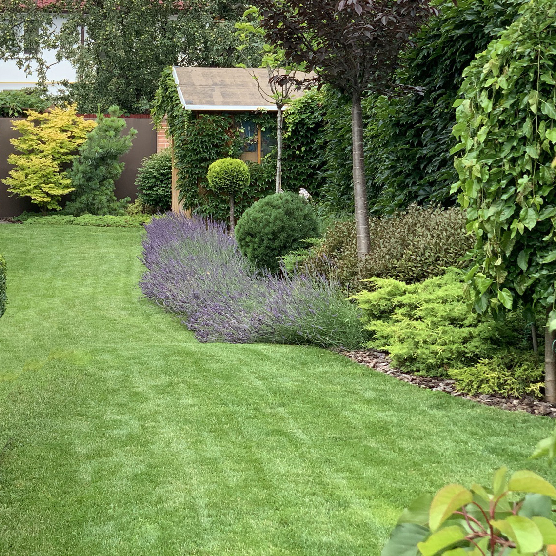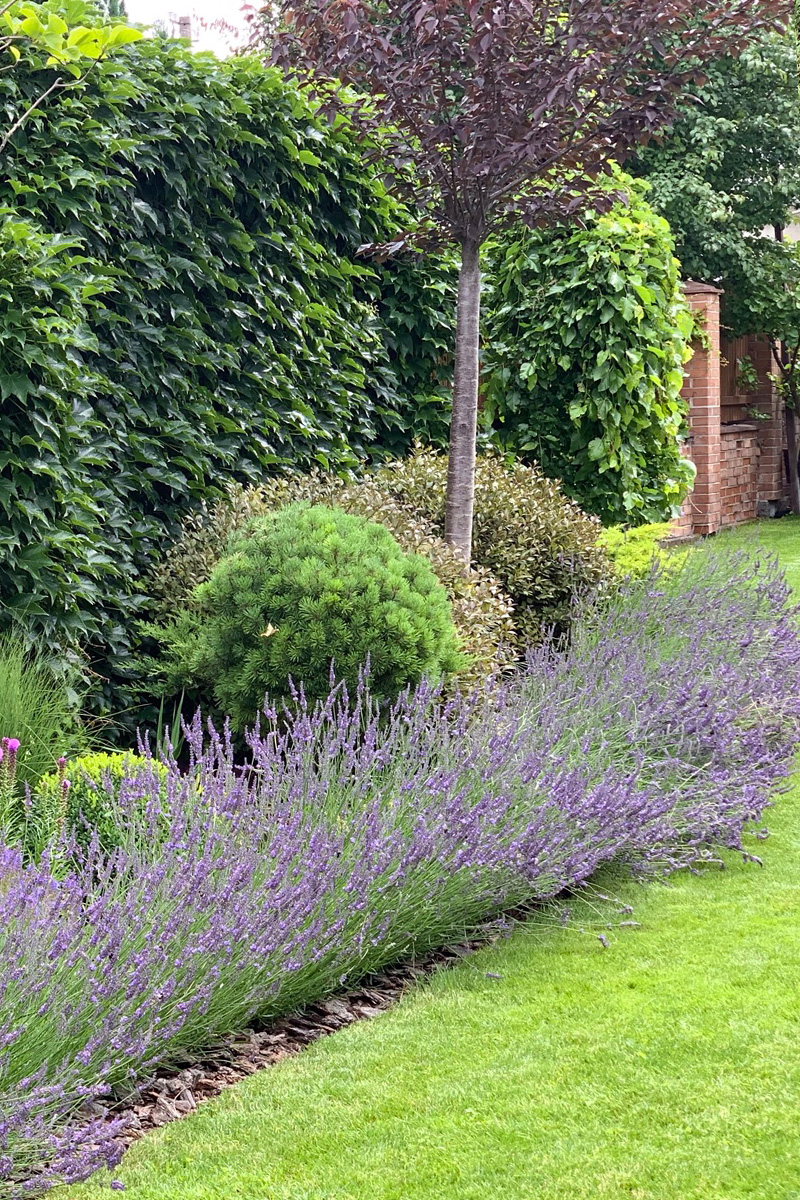 The highlight of this garden is garden orchids. The composition of the garden is completed with a array of perennials in blue and purple colors the structure of which is supported with boxwood balls.